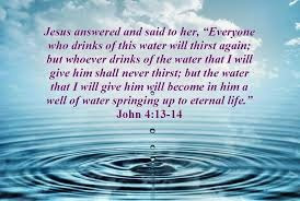 "Anyone who drinks the water I give will never thirst — not ever. The water I give will be an artesian spring within, gushing fountains of endless life.” John 4:14